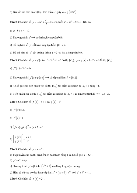 d) Gia tốc tức thời của vật tại thời điểm t giây a g 2 m/s . 2 Câu 2. Cho hàm số 3 4 x y x 2x 3, biết 2