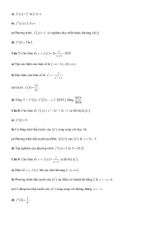Câu 3. Đạo hàm của hàm số x 1 y trên tập xác định là 2x 3 A. 5 y . B. 1 y . C. 5 y . D. 1 y . 2x 32 2x 32 2x 32 2x 32