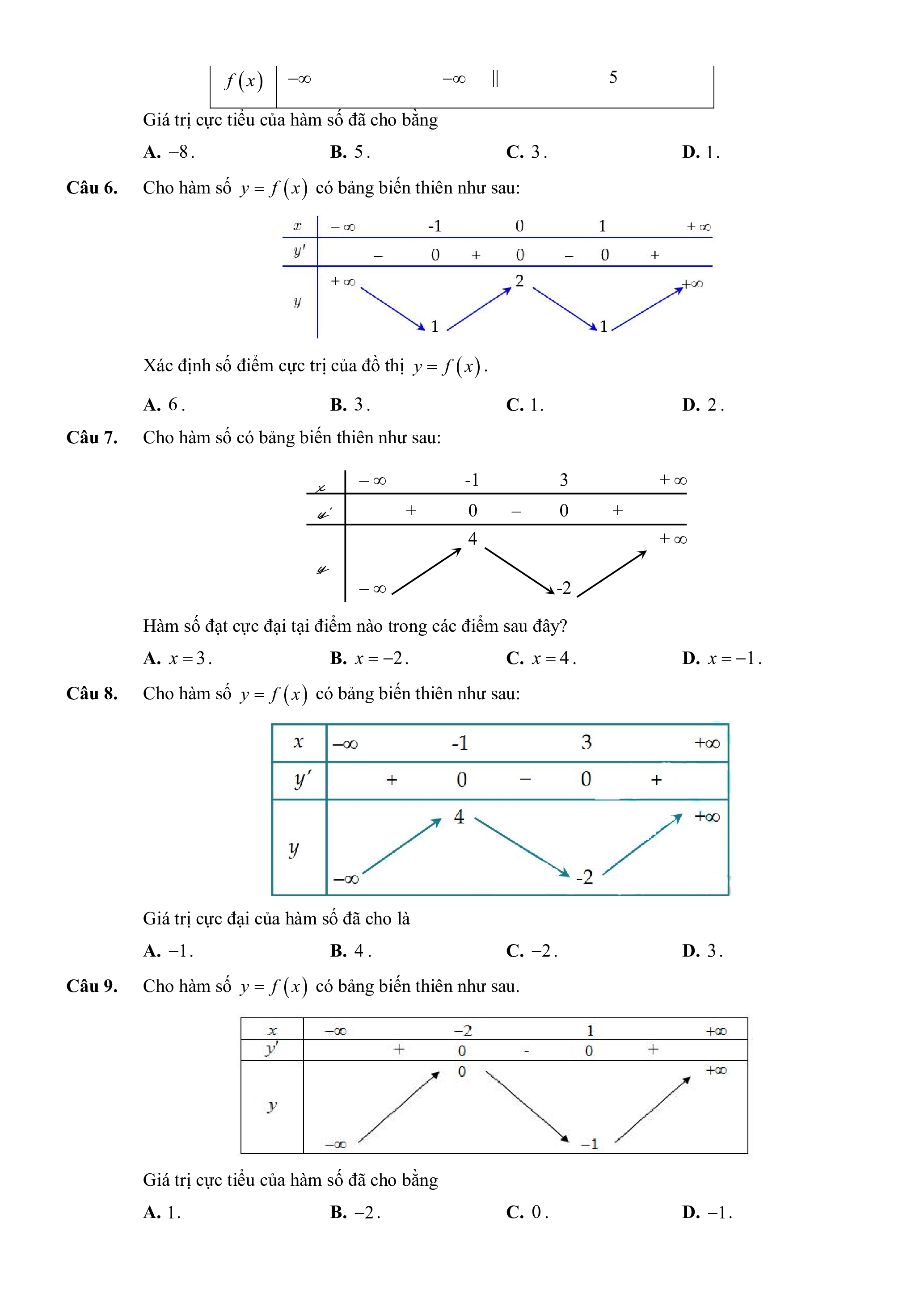 Giá trị cực tiểu của hàm số đã cho bằng A. 8 . B. 5. C. 3. D. 1.