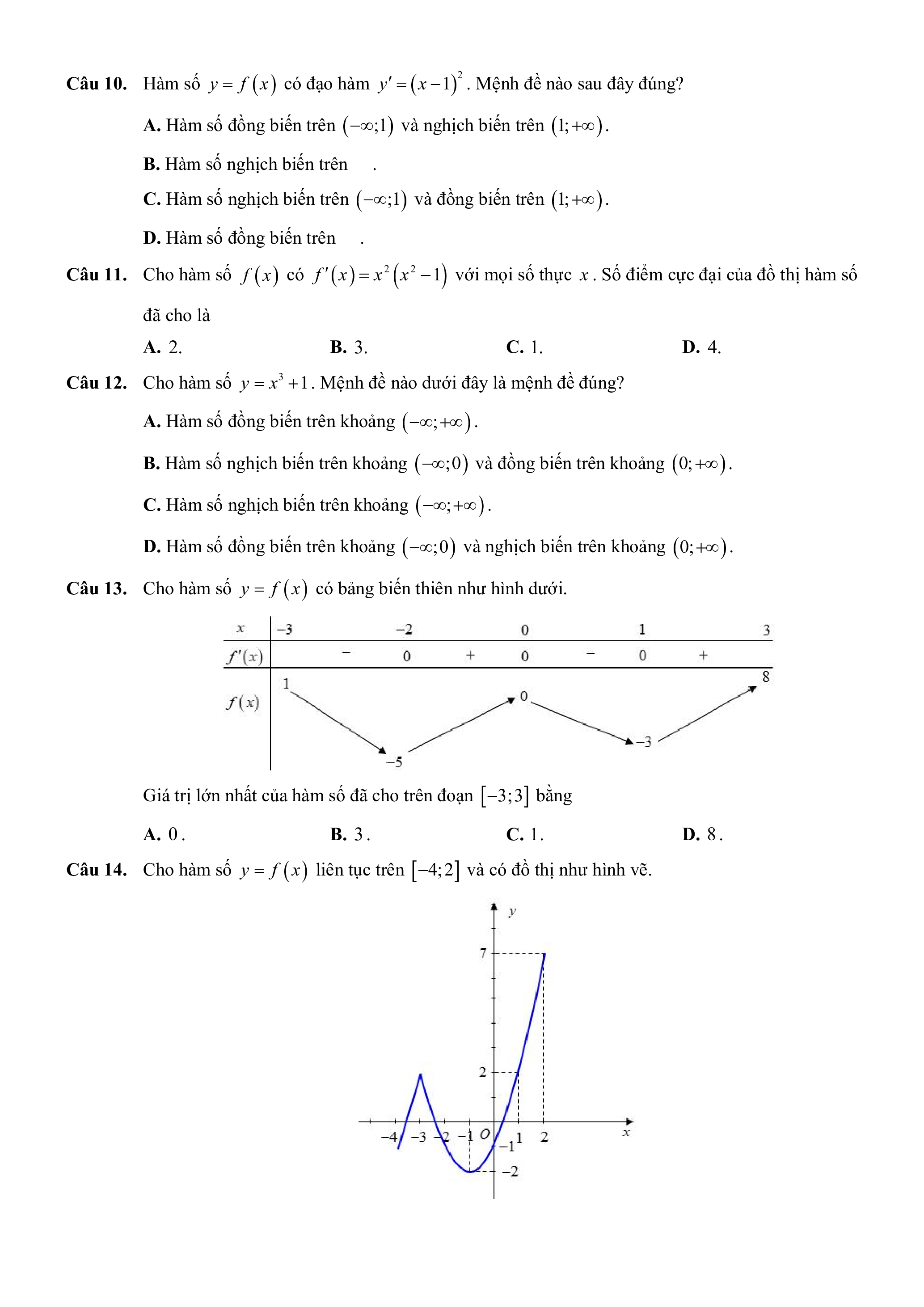 1 với mọi số thực x . Số điểm cực đại của đồ thị hàm số đã cho là A. 2. B. 3. C. 1. D. 4. Câu 12. Cho hàm số 3