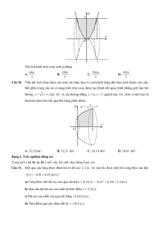 Câu 27. Tính thể tích V của phần vật thể giới hạn bởi hai mặt phẳng x 0, x 1, có thiết diện bị cắt bởi