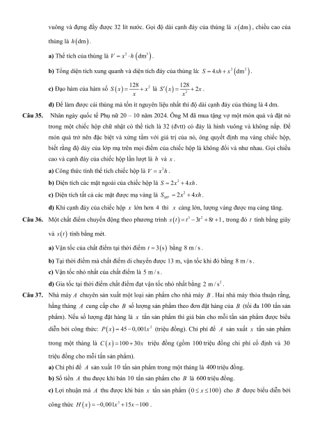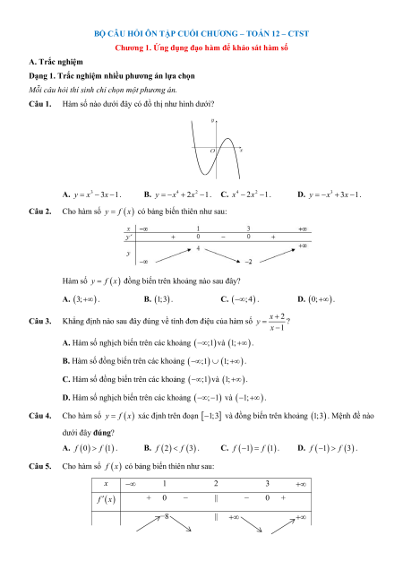 Chương 1. Ứng dụng đạo hàm để khảo sát hàm số A. Trắc nghiệm