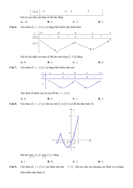 Câu 5. Cho hàm số f x có bảng biến thiên như sau: x 1 2 3 f x + 0 − | − 0 + −8 | f x | 5
