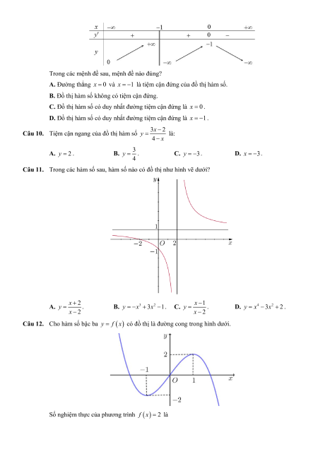 Câu 10. Tiệm cận ngang của đồ thị hàm số 3x 2 y là: 4 x A. y 2 . B. 3 y . C. y 3 . D. x 3. 4