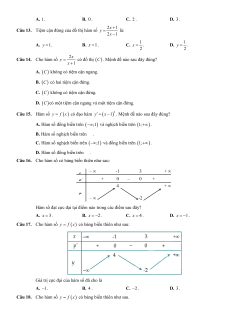 Câu 13. Tiệm cận đứng của đồ thị hàm số 2x 1 y là: 2x 1 A. y 1. B. x 1. C. 1 x . D. 1 y . 2 2 Câu 14. Cho hàm số 2x y