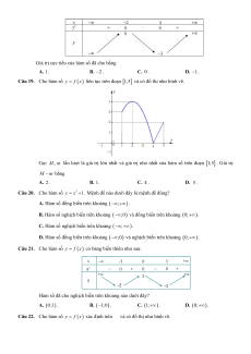 Câu 16. Cho hàm số có bảng biến thiên như sau: x – ∞ -1 3 + ∞ y' + 0 – 0 + 4 + ∞ y – ∞ -2