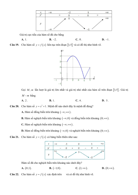 Câu 18. Cho hàm số y f x có bảng biến thiên như sau.