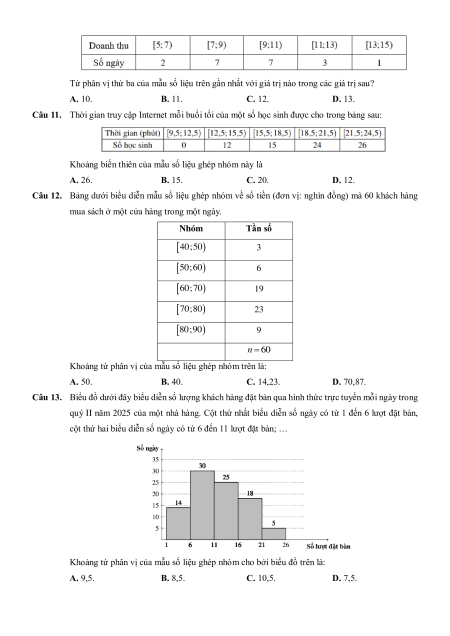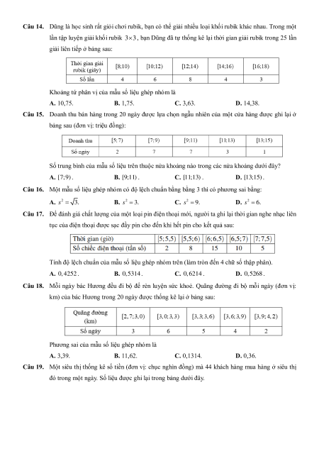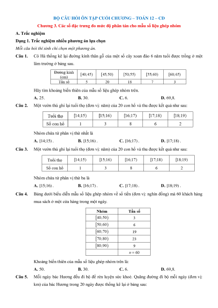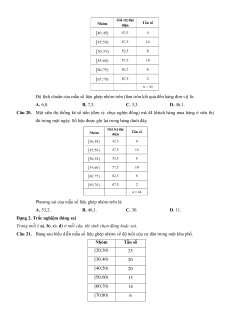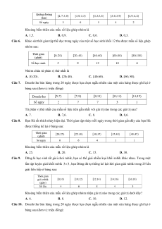 Chương 3. Các số đặc trưng đo mức độ phân tán cho mẫu số liệu ghép nhóm A. Trắc nghiệm