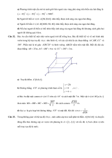 Câu 31. Trong không gian với hệ trục tọa độ Oxyz (đơn vị trên mỗi trục là mét), một ngọn hải đăng được