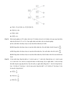 A B thỏa mãn PB 0,7; P A B 0, 2 thì P A | B bằng: 5 1 7 2 A. . B. . C. . D. . 7 2 50 7 Câu 6.