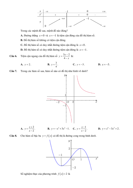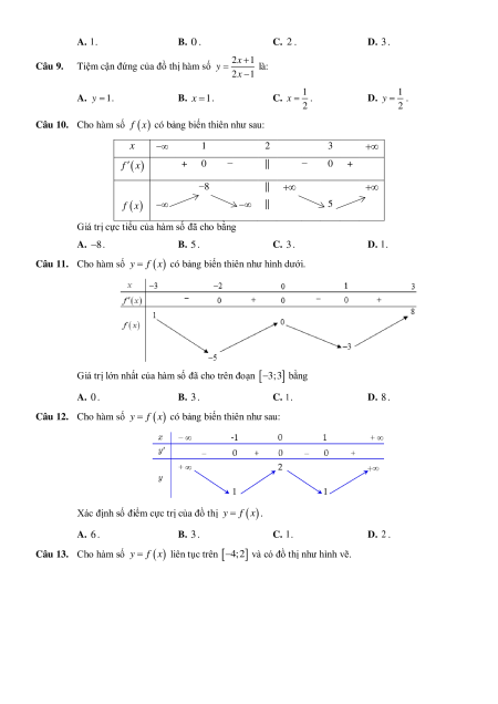 Số nghiệm thực của phương trình f x 2 là A. 1. B. 0 . C. 2 . D. 3 . 2x 1 Câu 9.
