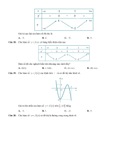 Câu 16. Cho hàm số có bảng biến thiên như sau: x – ∞ -1 3 + ∞ y' + 0 – 0 + 4 + ∞ y – ∞ -2