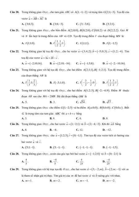 Câu 27. Trong không gian Oxyz, cho u 1;2;3,v 0; 1 ;