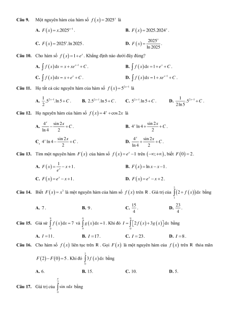 Chương 4. Nguyên hàm và tích phân A. Trắc nghiệm