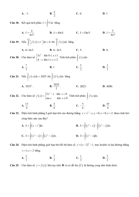 Câu 17. Giá trị của sin xdx bằng 0 A. 1. B. . C. 0 . D. 1. 2 1