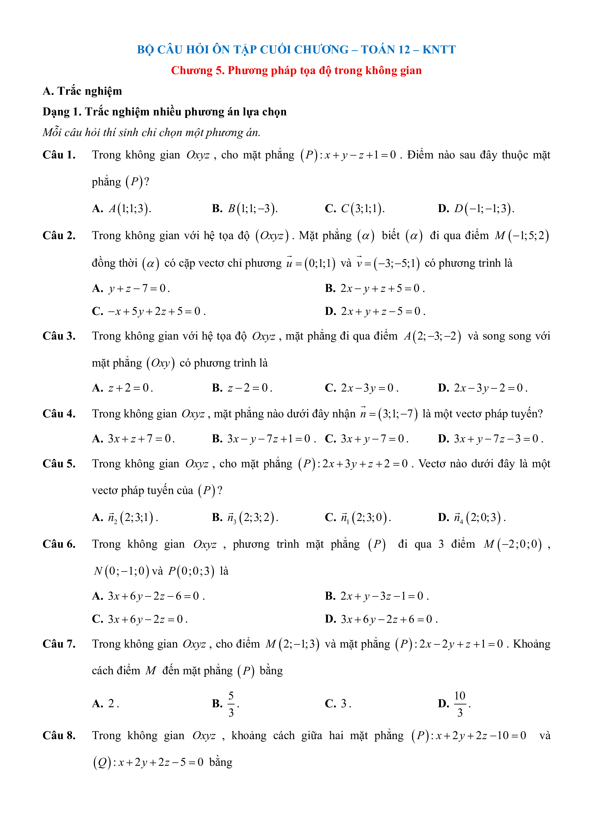 BỘ CÂU HỎI ÔN TẬP CUỐI CHƯƠNG – TOÁN 12 – KNTT