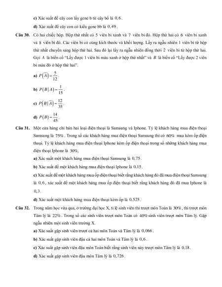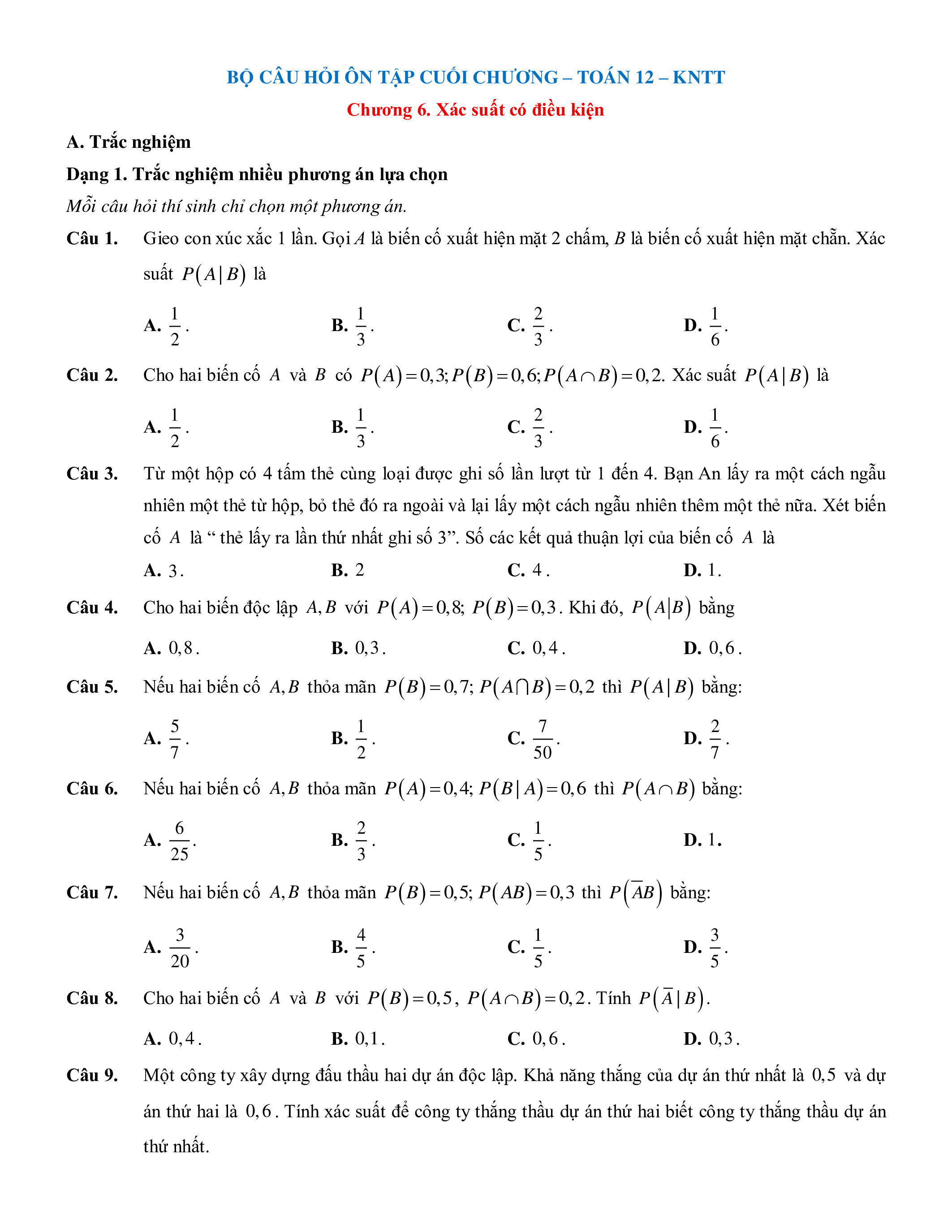 Chương 6. Xác suất có điều kiện A. Trắc nghiệm