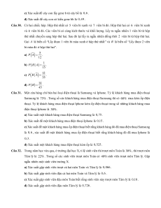 Câu 12. Một cửa hàng thời trang ước lượng rằng có 86%khách hàng đến cửa hàng mua quần áo là phụ nữ,