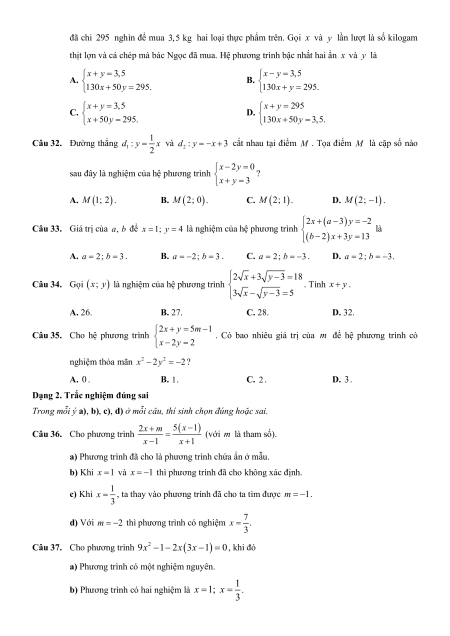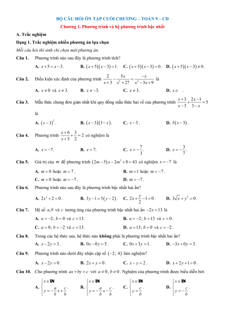 Chương 1. Phương trinh va hê phương trinh bâc nhât A. Trắc nghiêm