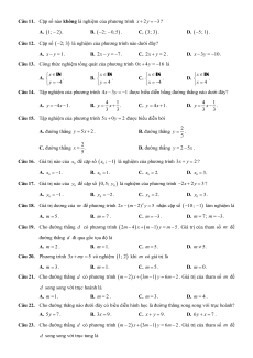 Câu 20. Phương trình 3x my 5 có nghiệm 1; 2 khi m có giá trị là A. m 3. B. m 1. C. m 5. D. m 0.