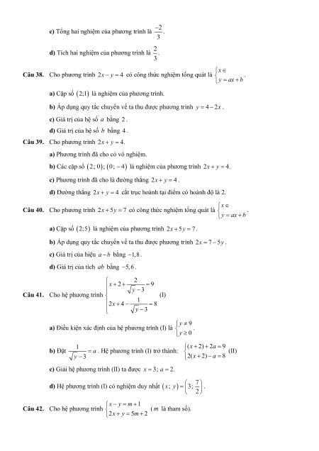Câu 9. Phương trình nào dưới đây nhận cặp số 2 ; 4 làm nghiệm?