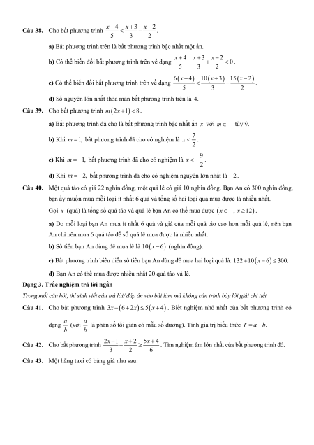1 8 là bất phương trình bậc nhất một ẩn? A. m 1. B. 1 m . C. m 0 . D. m 8 . 3