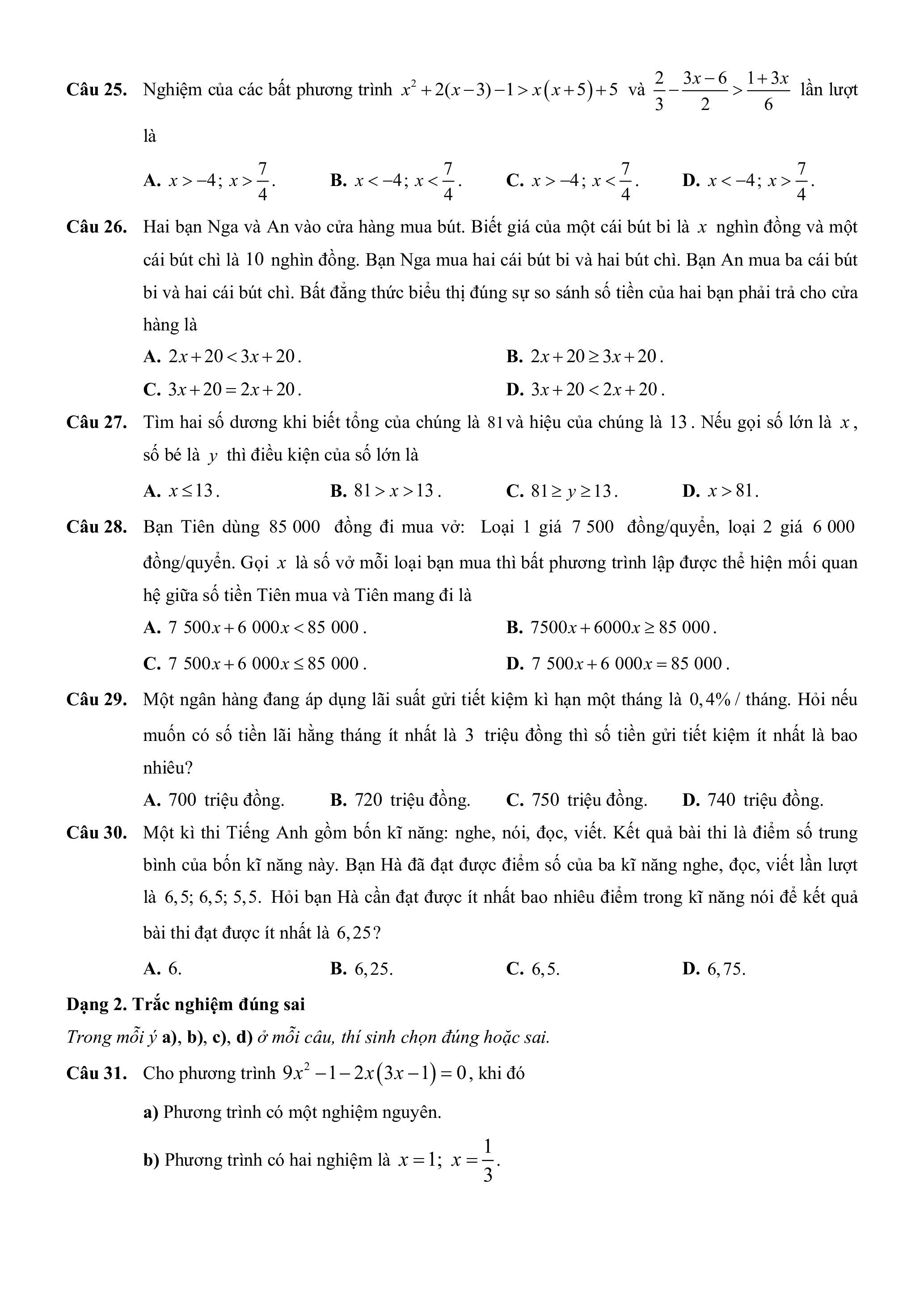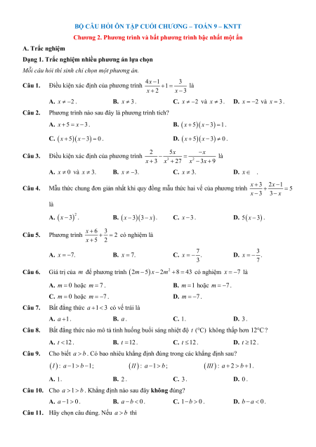 Chương 2. Phương trinh va bât phương trinh bâc nhât môt ân A. Trắc nghiệm