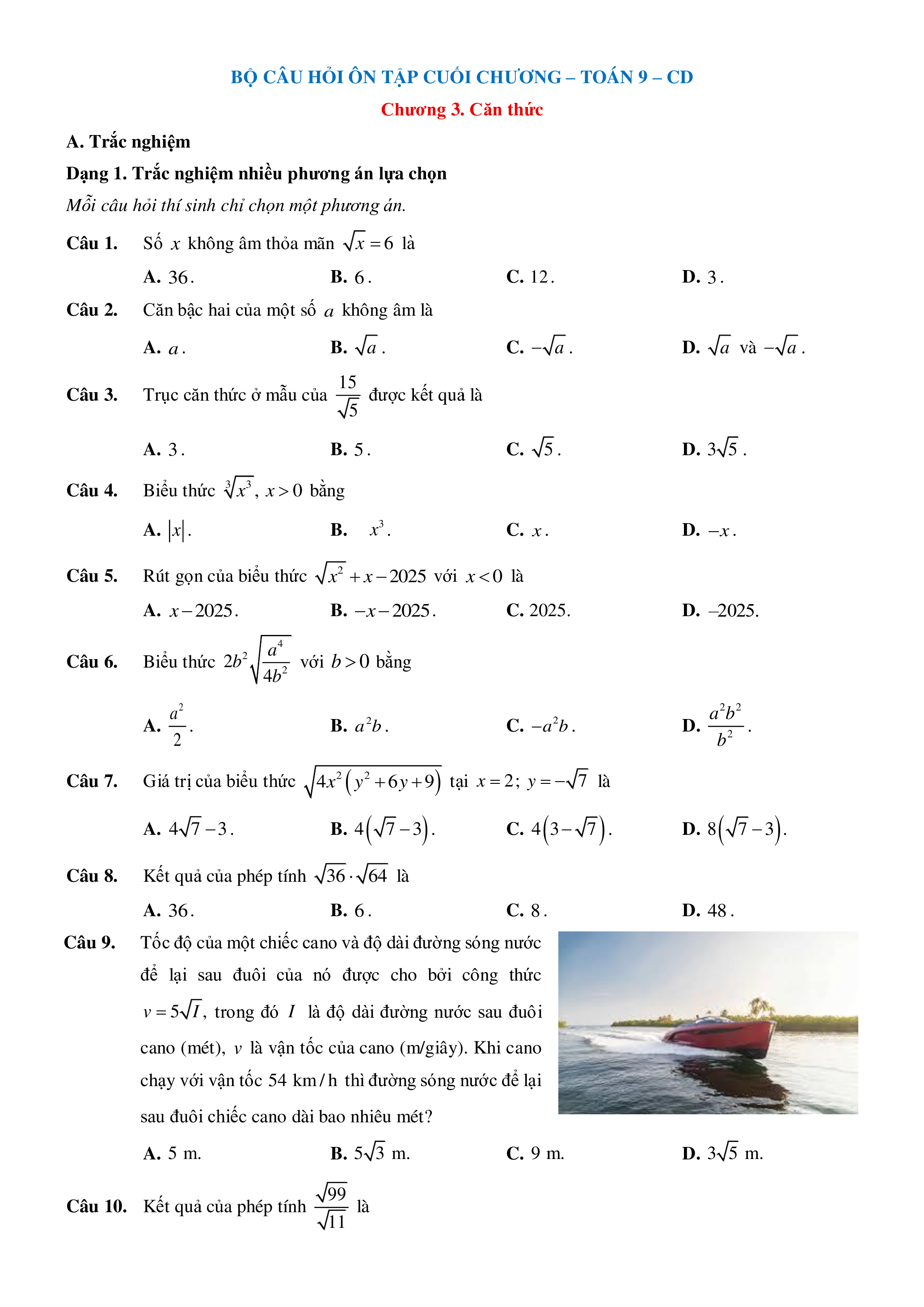 BỘ CÂU HỎI ÔN TẬP CUỐI CHƯƠNG – TOÁN 9 – CD