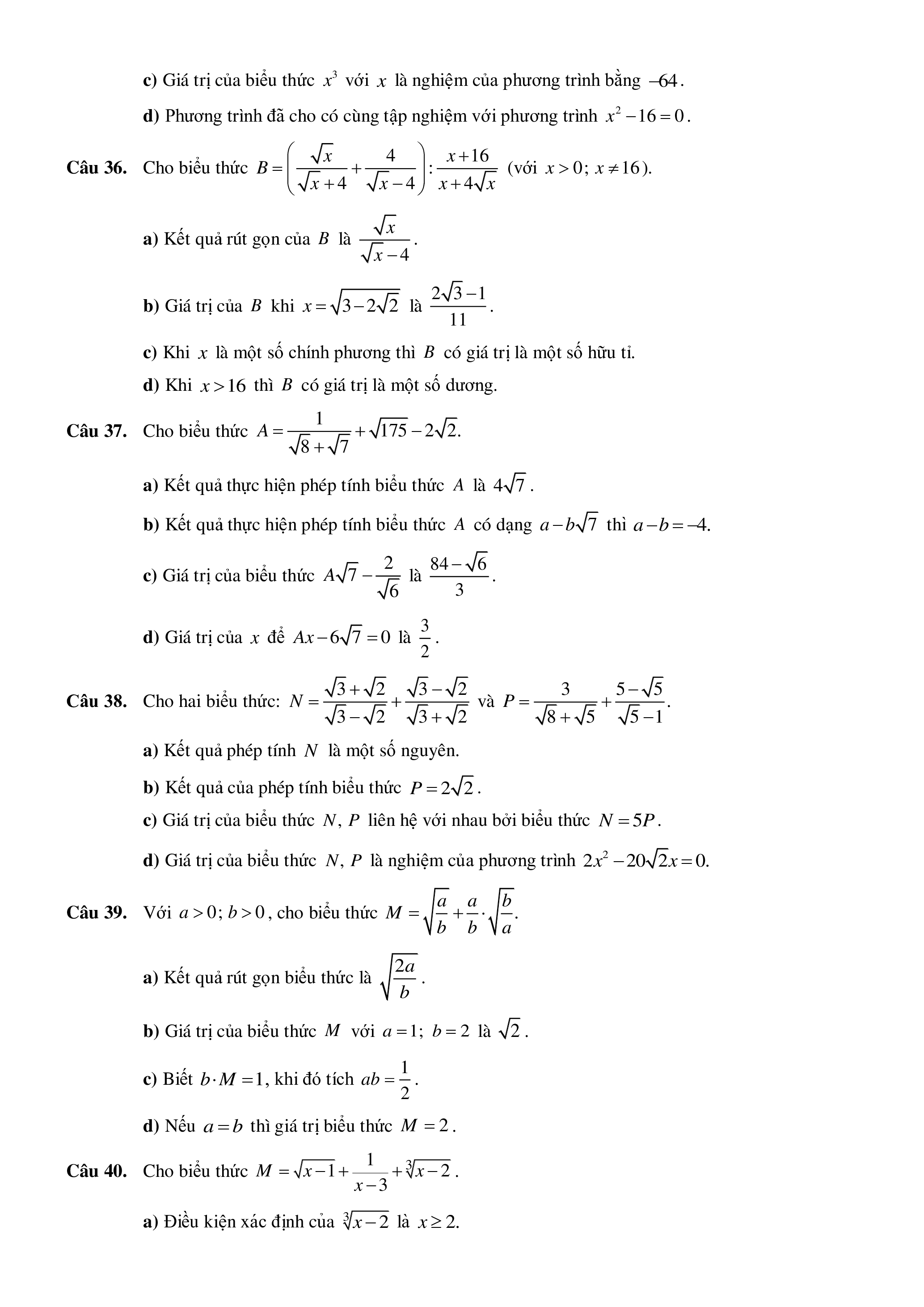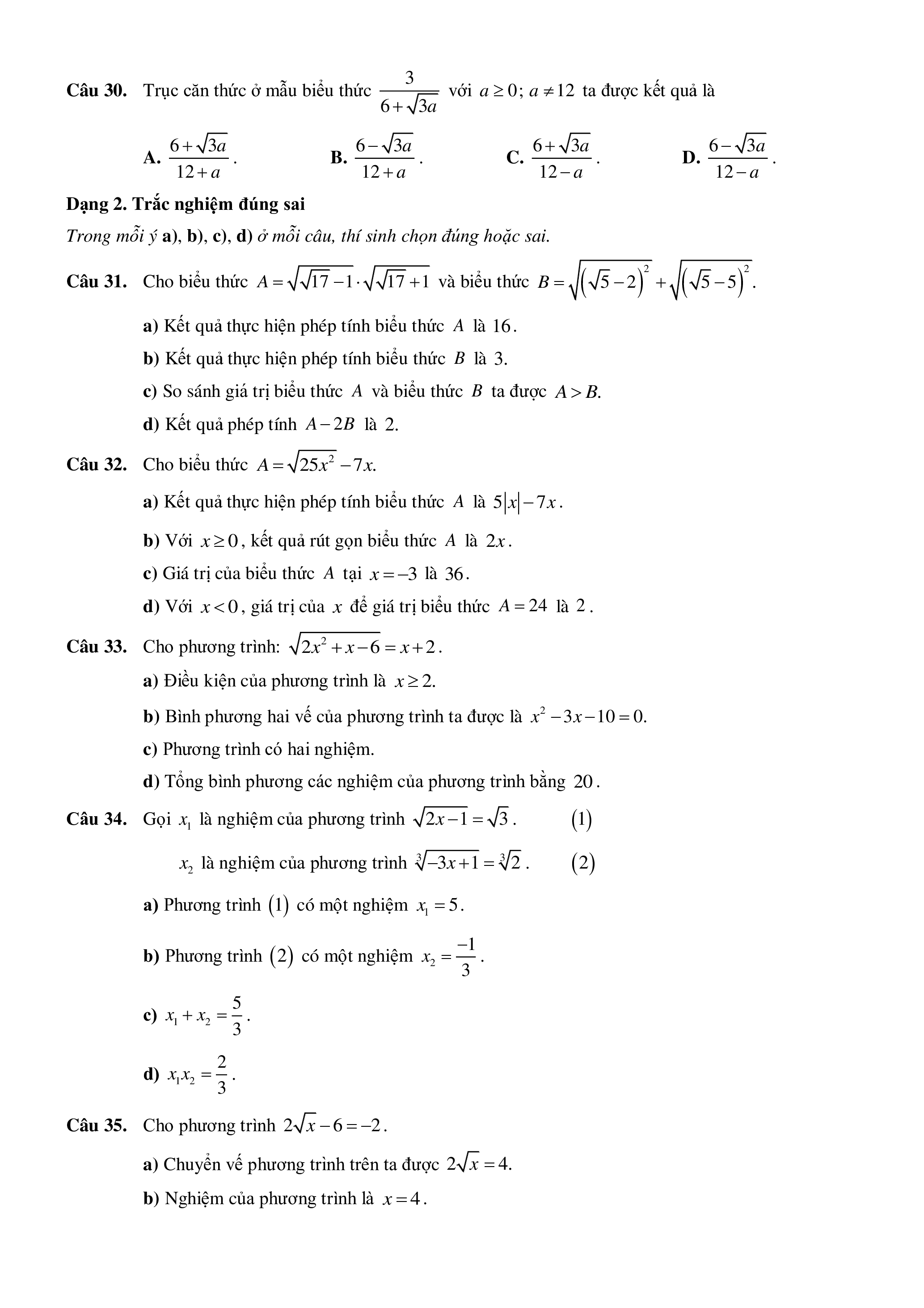 Câu 30. Trục căn thức ở mẫu biểu thức