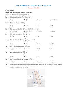 BỘ CÂU HỎI ÔN TẬP CUỐI CHƯƠNG – TOÁN 9 – CTST