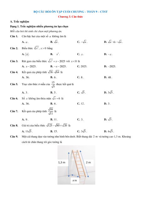 Chương 3. Căn thức A. Trắc nghiệm