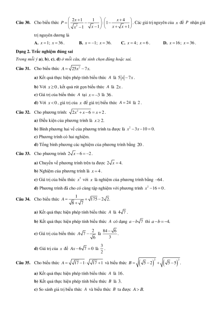 Câu 31. Cho biểu thức 2