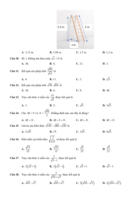 Câu 26. Trục căn thức ở mẫu biểu thức