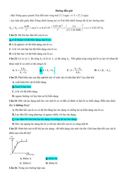Câu 20. Mặt Trăng quay quanh Trái Đất một vòng mất 27,3 ngày. Biết lực hấp dẫn giữa các vật có khối 2