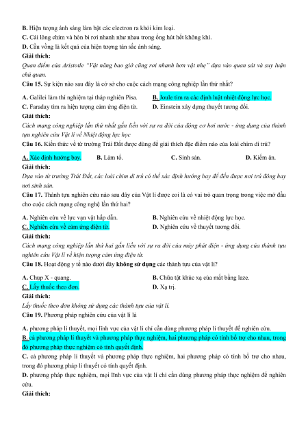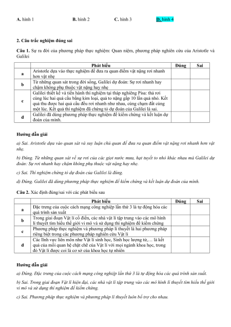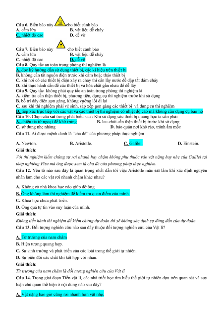 Câu 11. Ai được mệnh danh là “cha đẻ” của phương pháp thực nghiệm A. Newton. B. Aristotle. C. Galilei. D. Einstein. Giải thích: