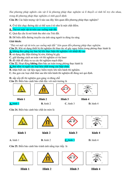 Câu 20. Các hiện tượng vật lí nào sau đây liên quan đến phương pháp thực nghiệm?
