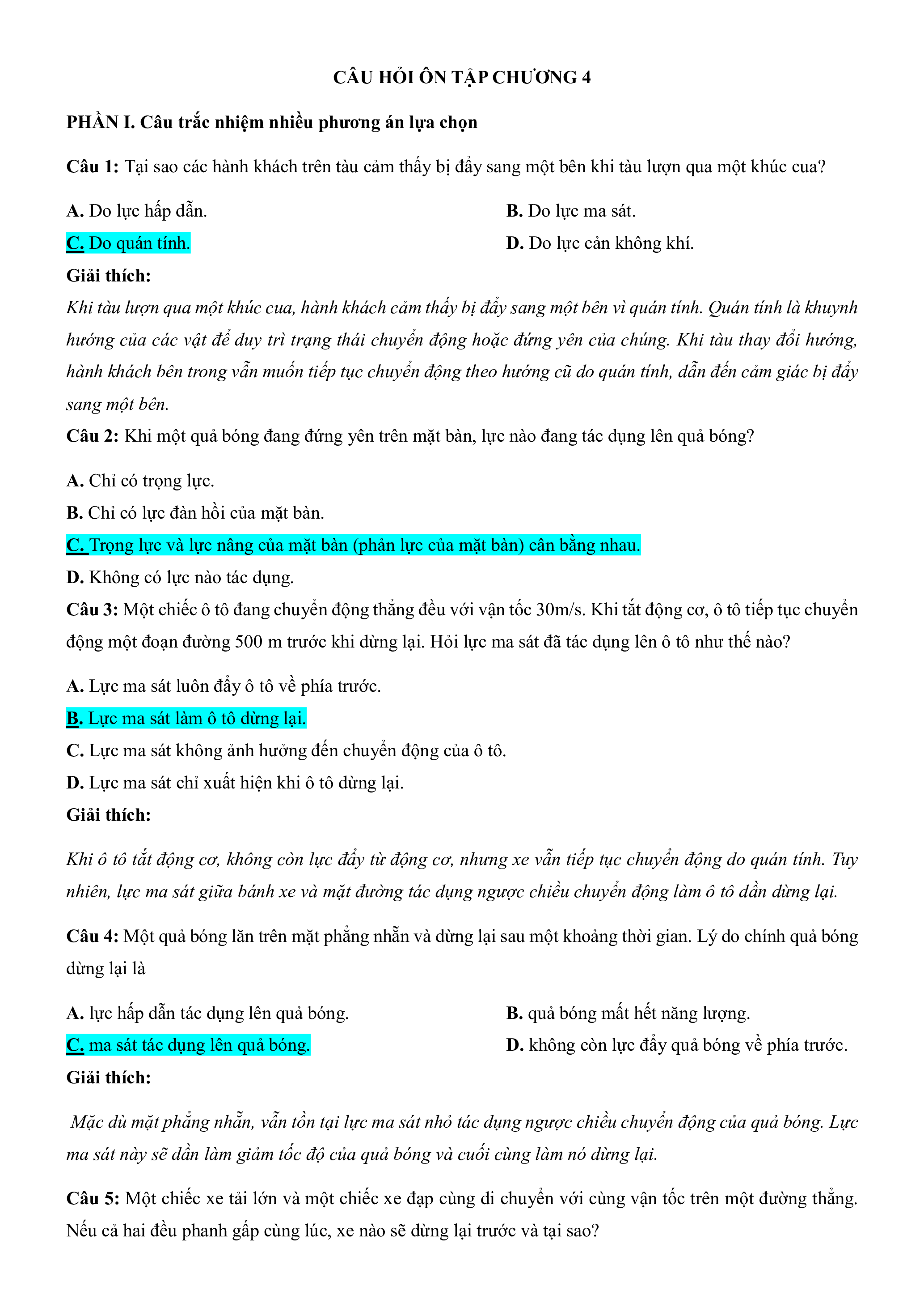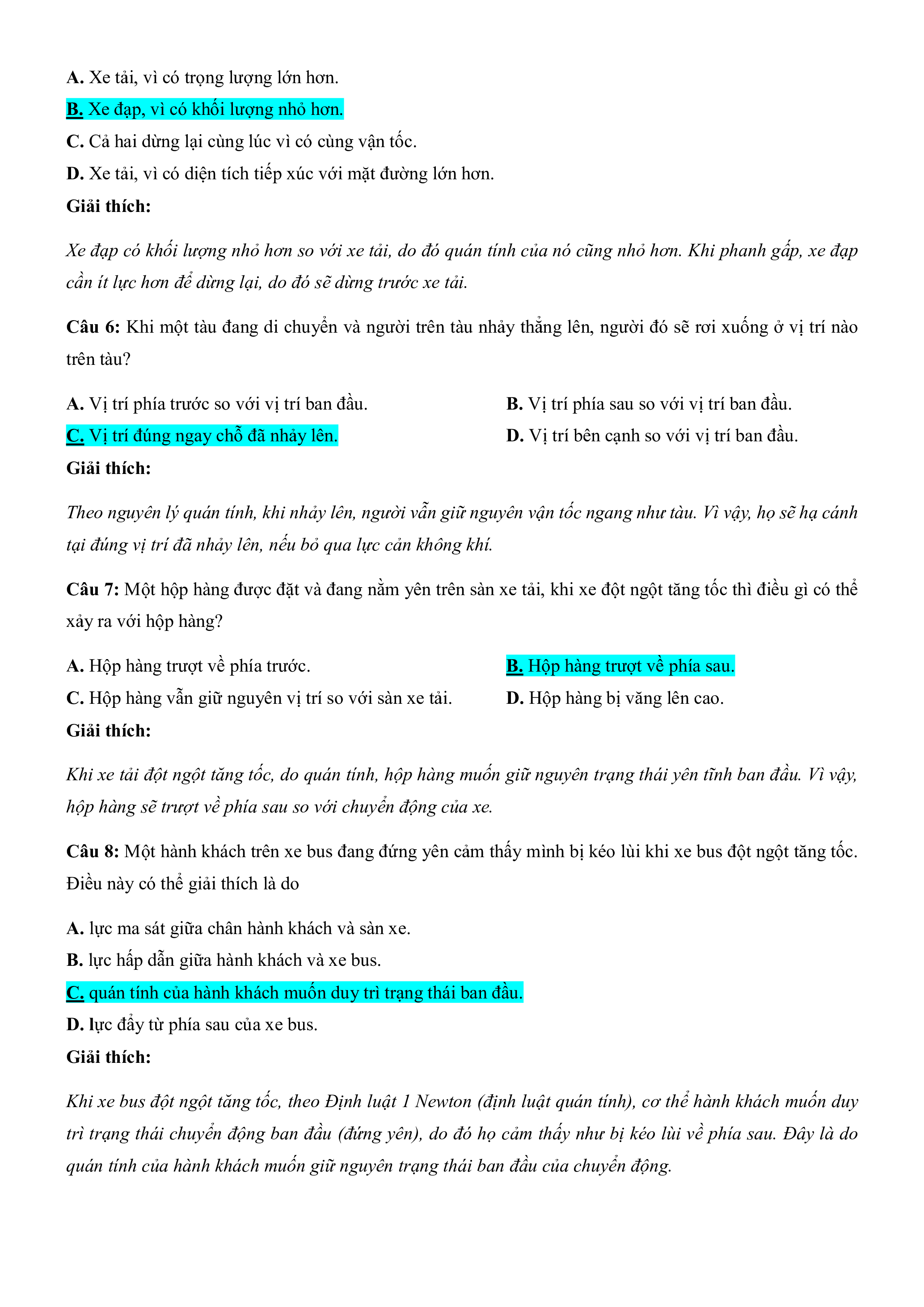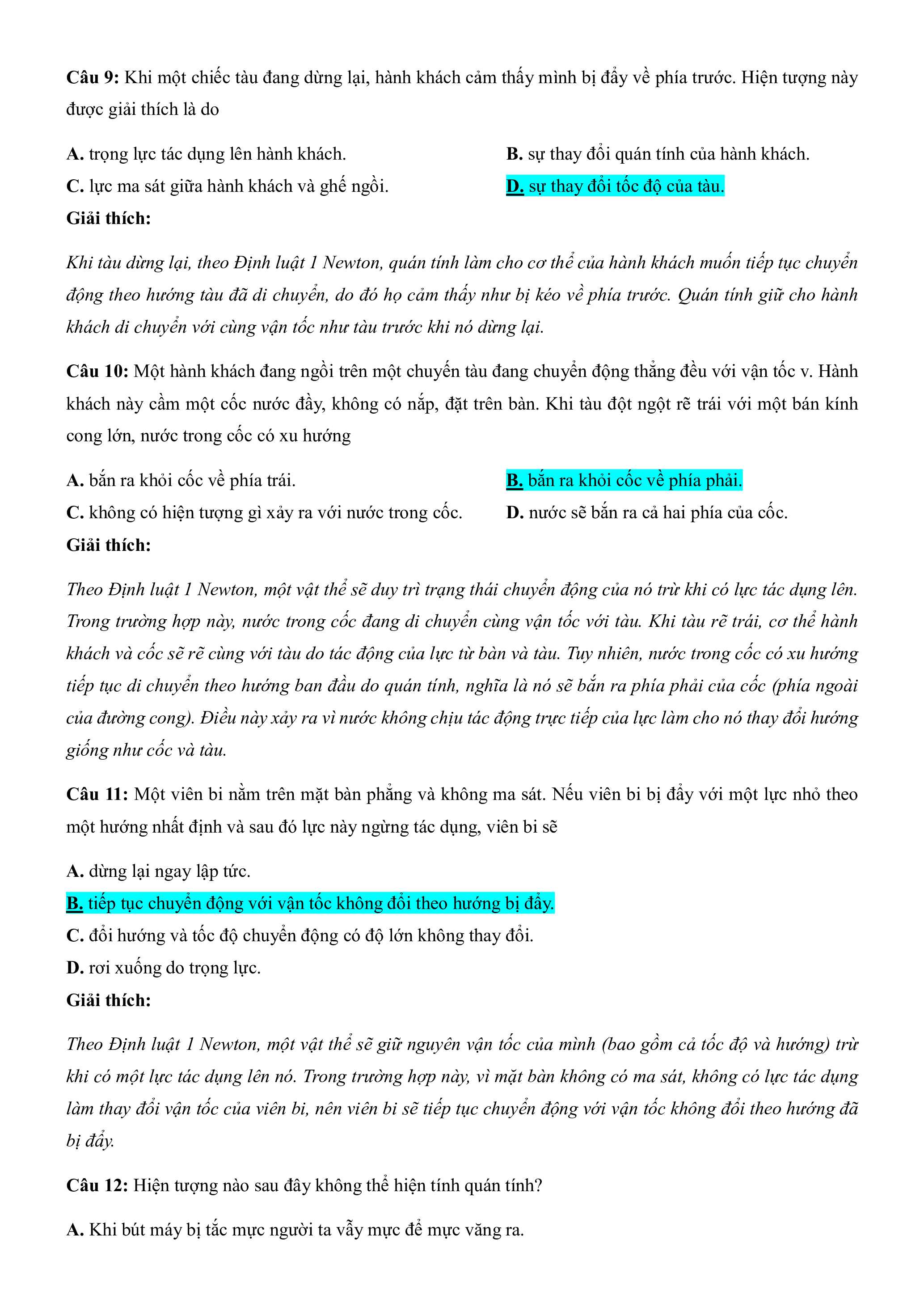 Câu 9: Khi một chiếc tàu đang dừng lại, hành khách cảm thấy mình bị đẩy về phía trước. Hiện tượng này