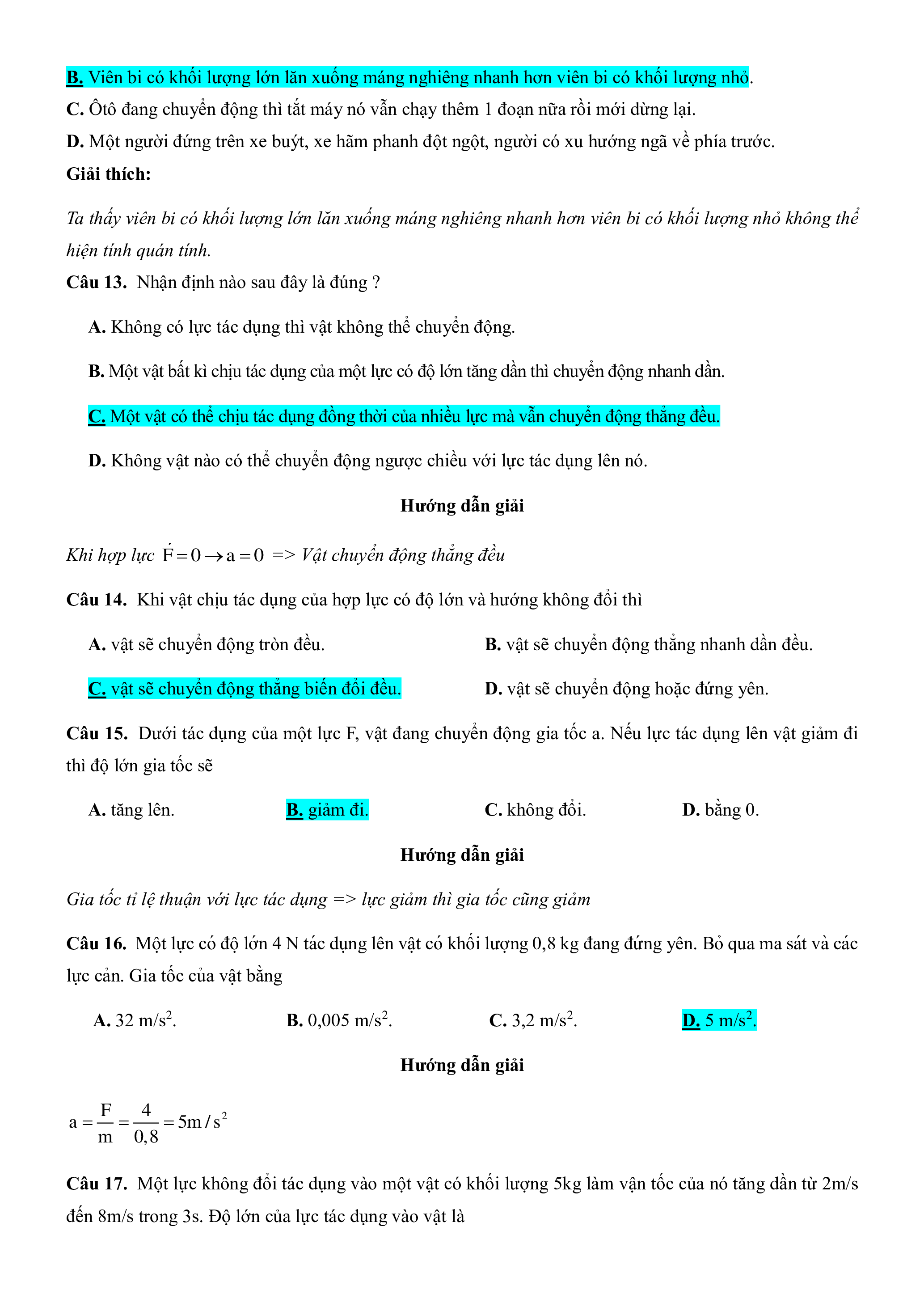 Câu 15. Dưới tác dụng của một lực F, vật đang chuyển động gia tốc a. Nếu lực tác dụng lên vật giảm đi
