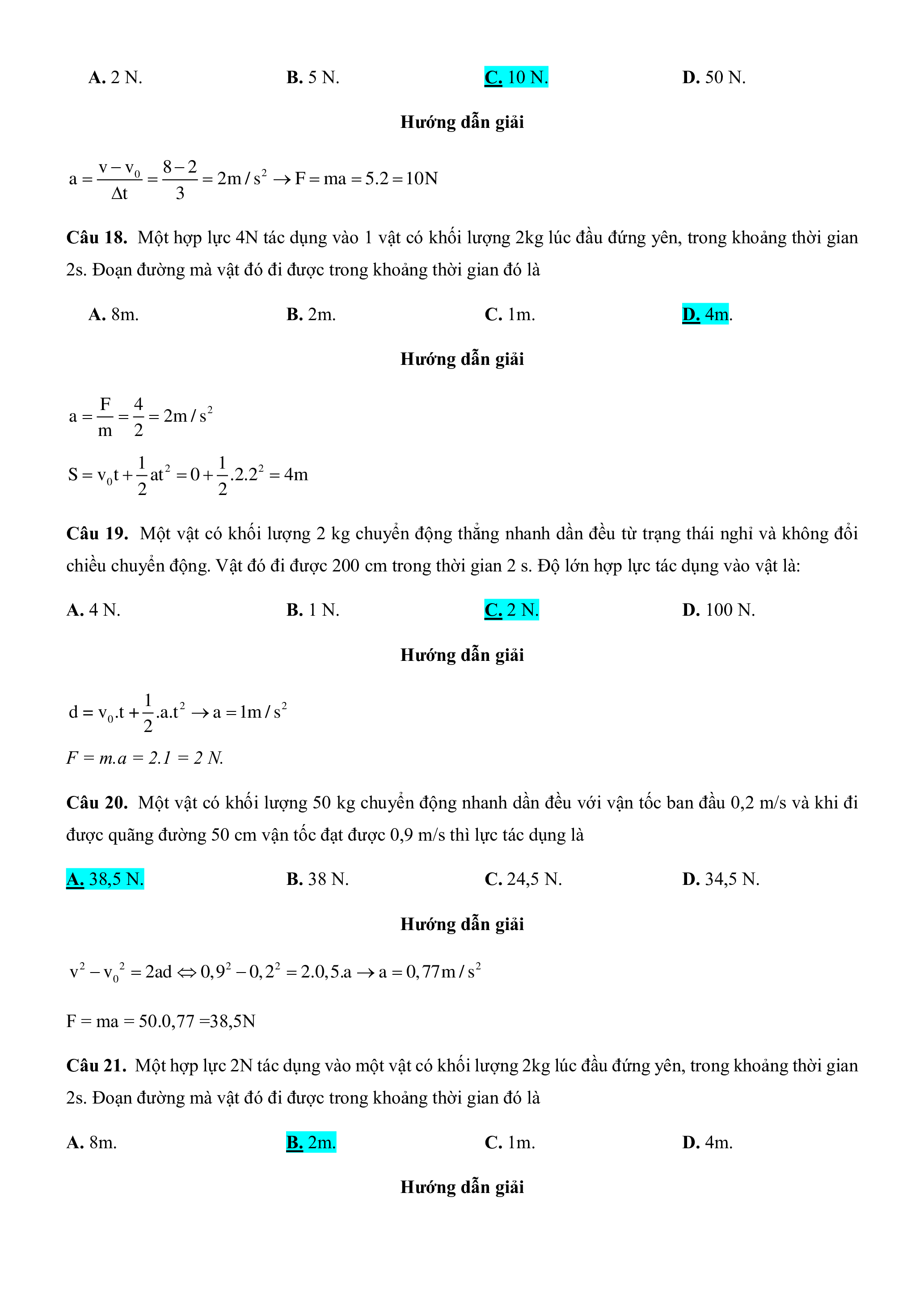 Câu 17. Một lực không đổi tác dụng vào một vật có khối lượng 5kg làm vận tốc của nó tăng dần từ 2m/s