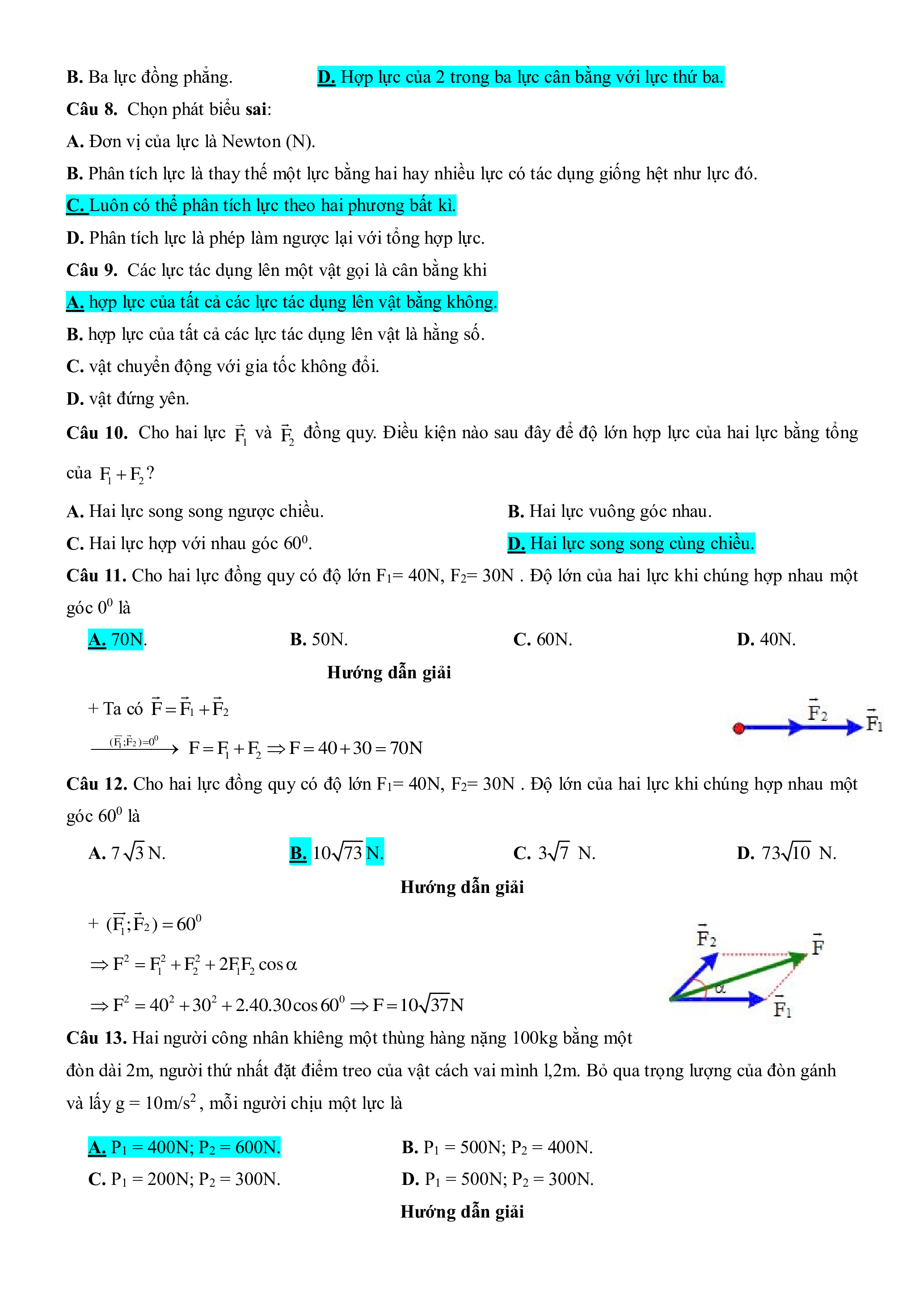 Câu 6. Chọn phát biểu sai về tổng hợp và phân tích lực.