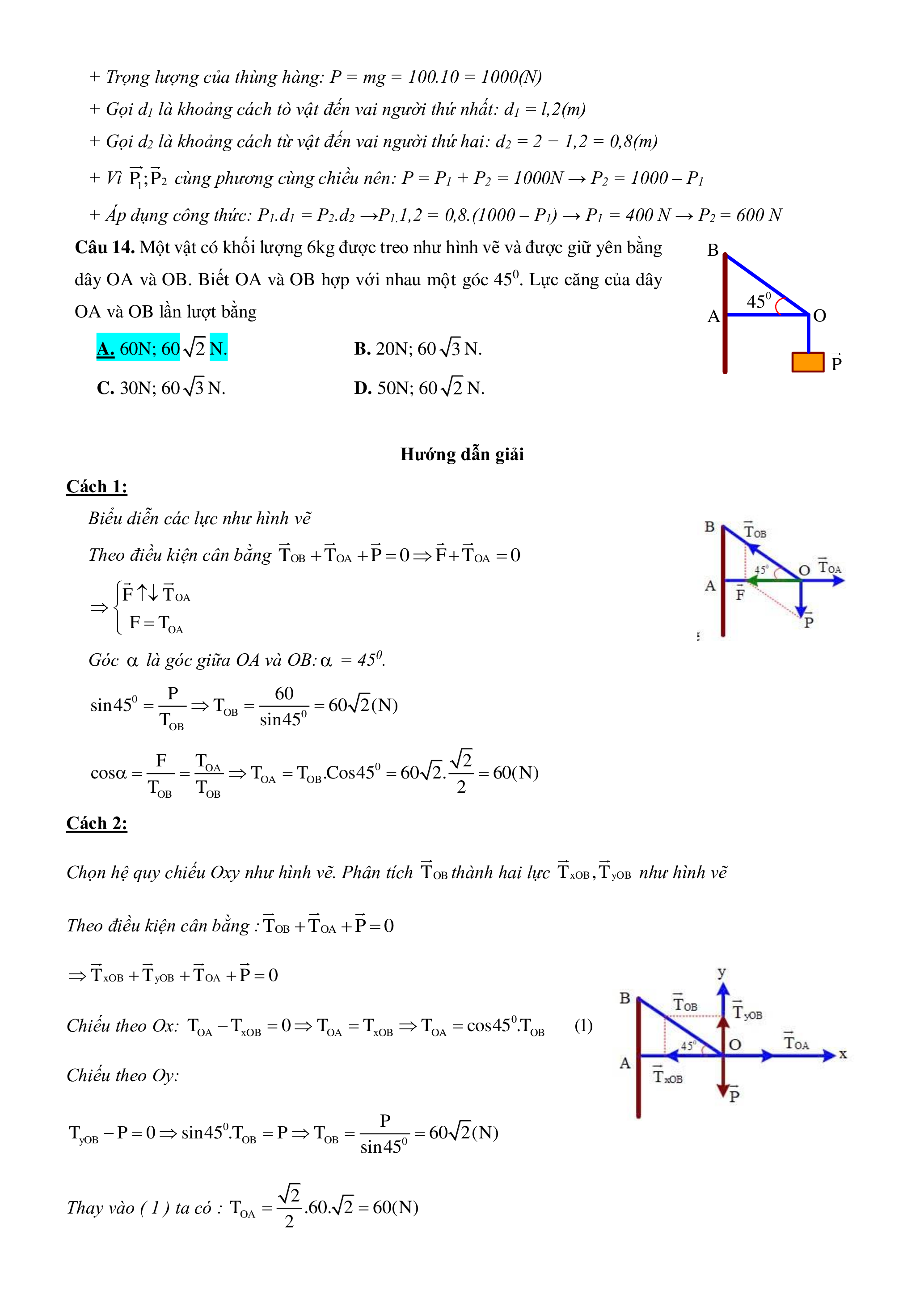 OA và OB lần lượt bằng A O A. 60N; 60 2 N. B. 20N; 60 3 N. P C. 30N; 60 3 N. D. 50N; 60 2 N. Hướng dẫn giải Cách 1: