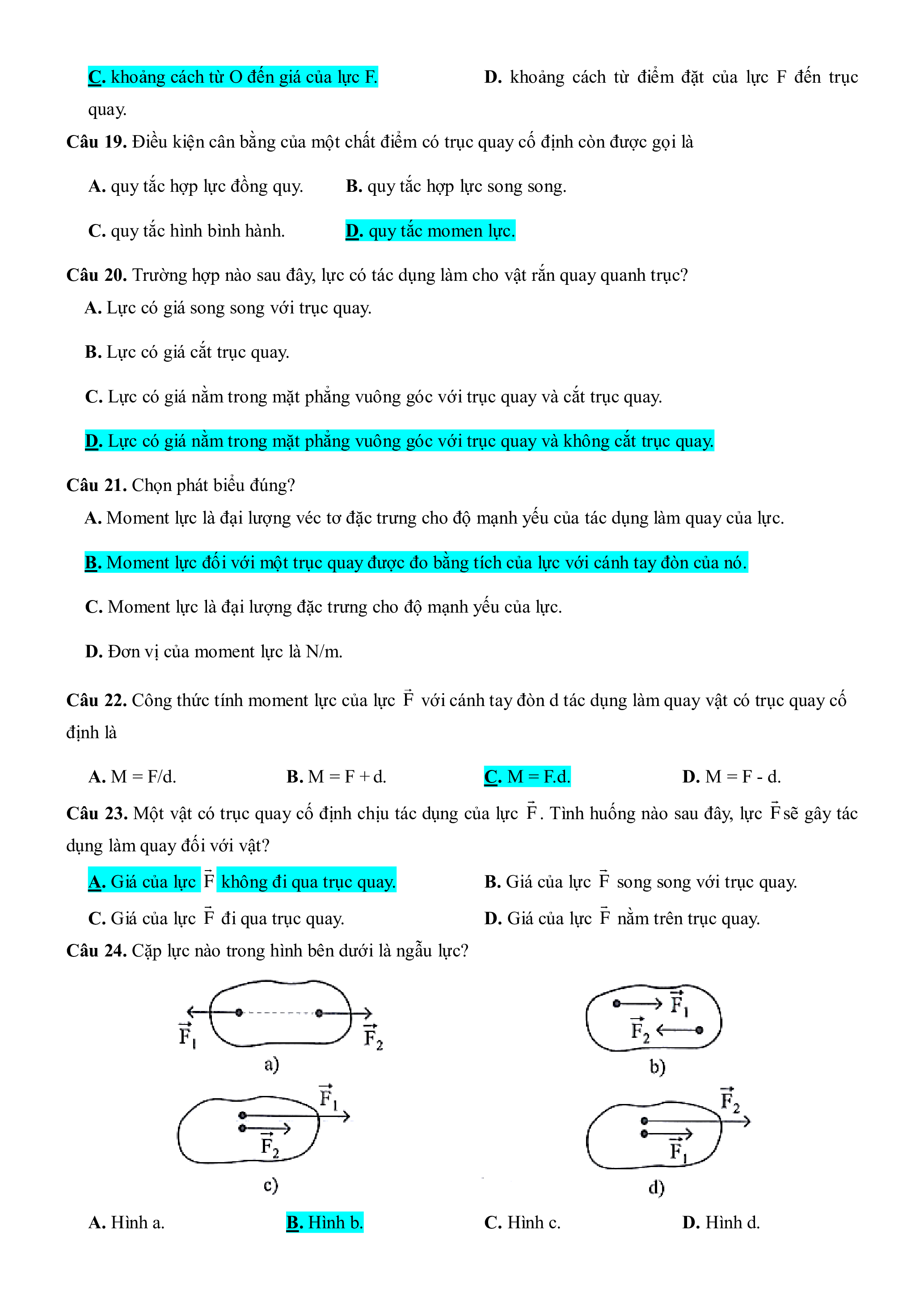 Câu 16. Moment lực tác dụng lên một vật là đại lượng A. véc - tơ.