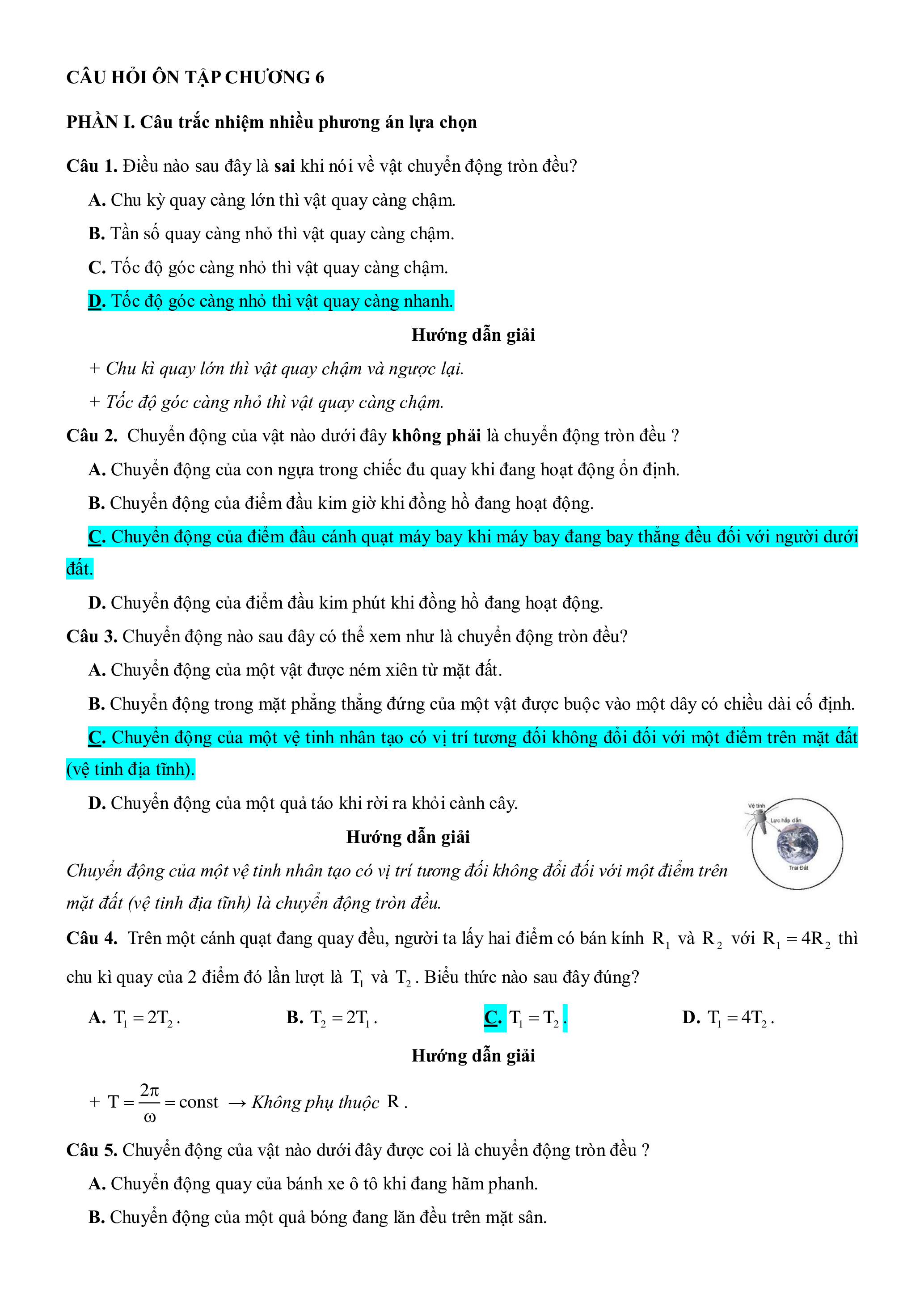 Câu 1. Điều nào sau đây là sai khi nói về vật chuyển động tròn đều?