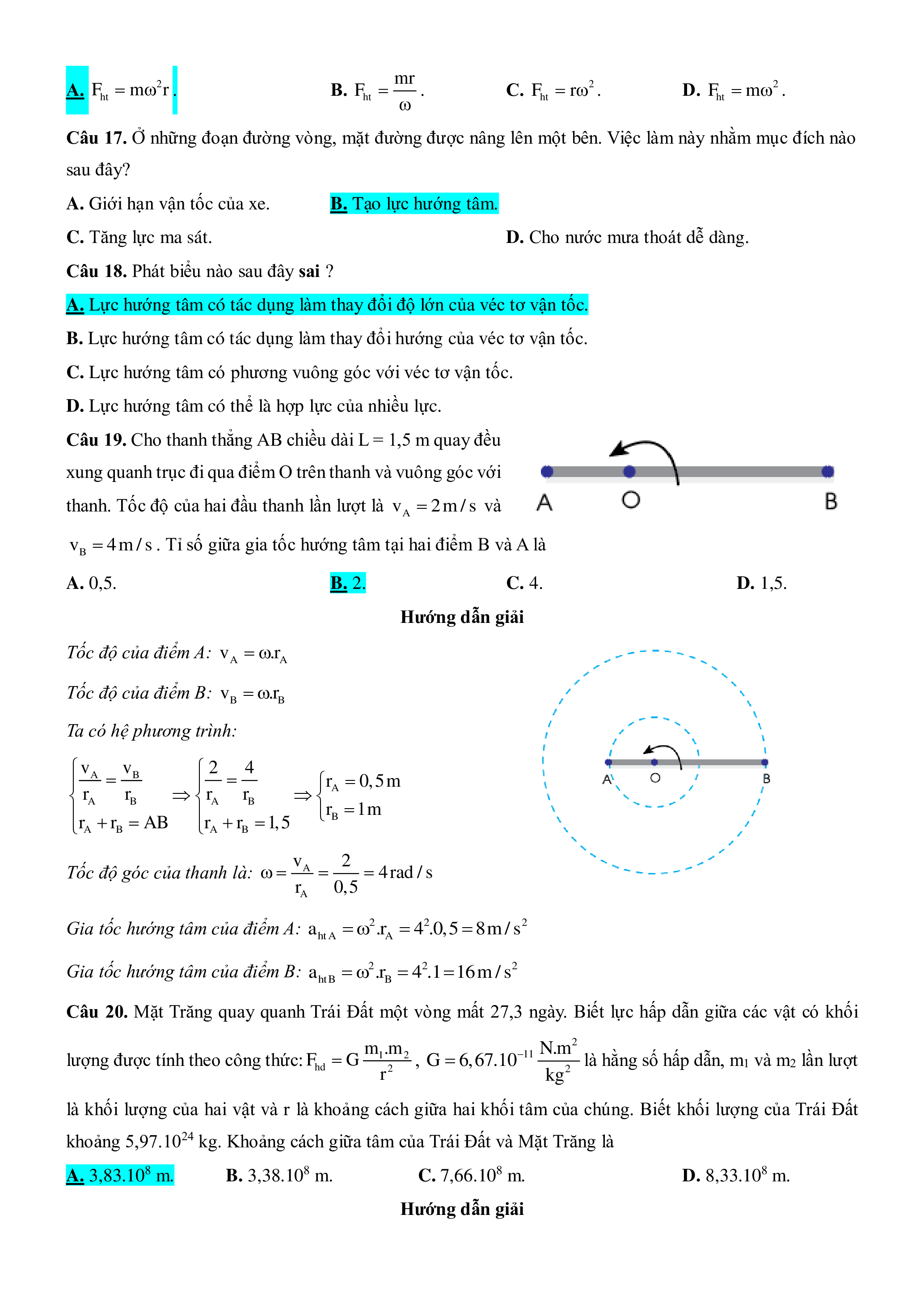 Câu 19. Cho thanh thẳng AB chiều dài L = 1,5 m quay đều