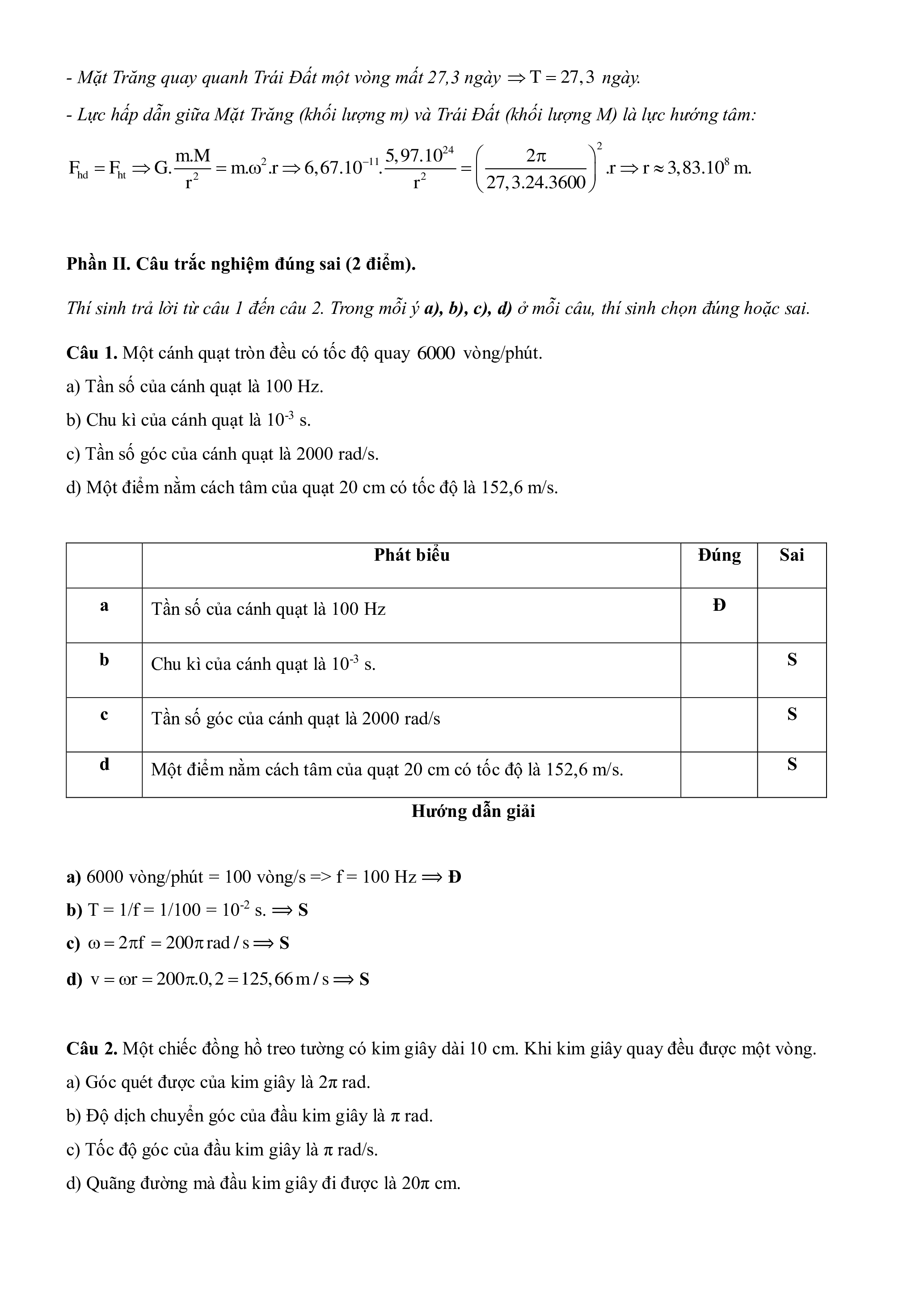 Câu 10. Tốc độ góc của đầu van xe là A. 25 rad/s. B. 20 rad/s. C. 52 rad/s. D. 27 rad/s. Hướng dẫn giải