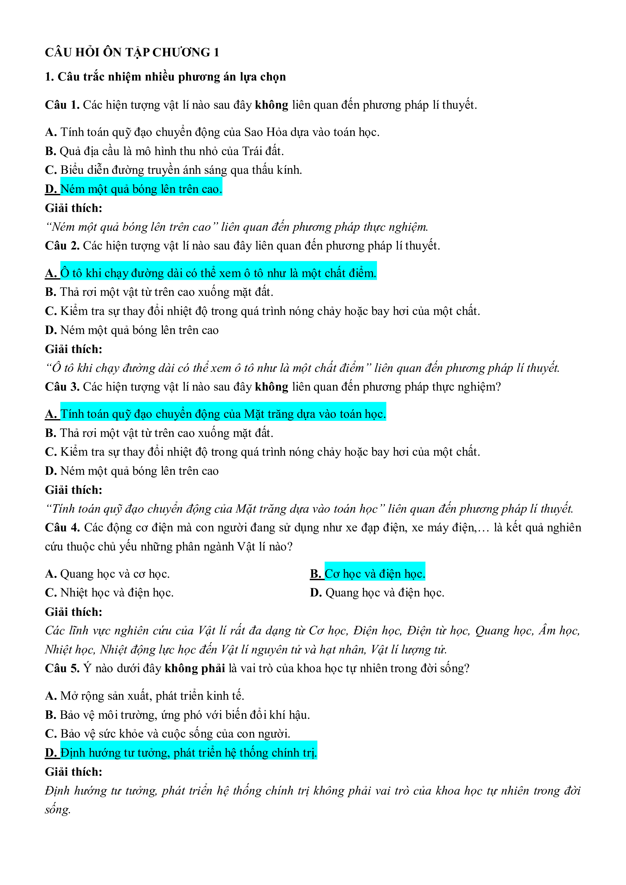 Câu 1. Các hiện tượng vật lí nào sau đây không liên quan đến phương pháp lí thuyết.