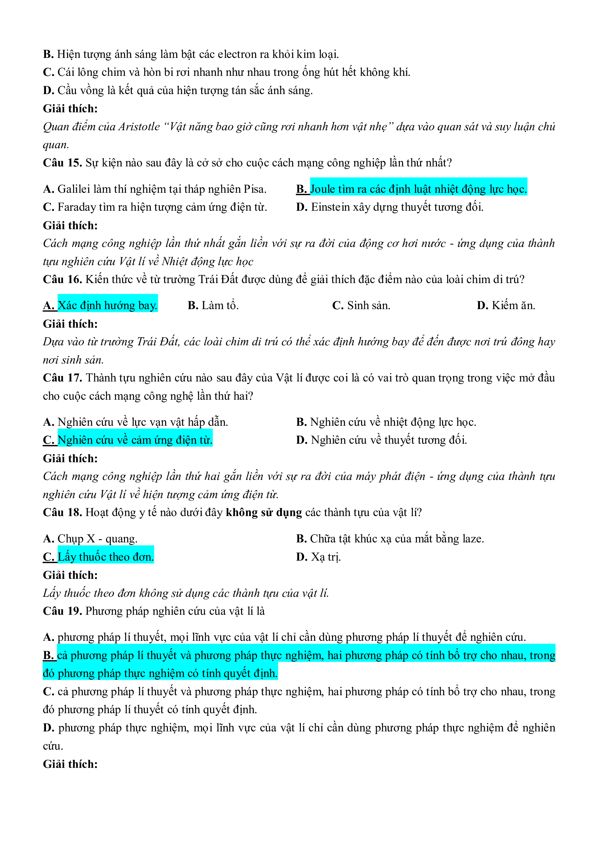 Câu 11. Ai được mệnh danh là “cha đẻ” của phương pháp thực nghiệm A. Newton. B. Aristotle. C. Galilei. D. Einstein. Giải thích: