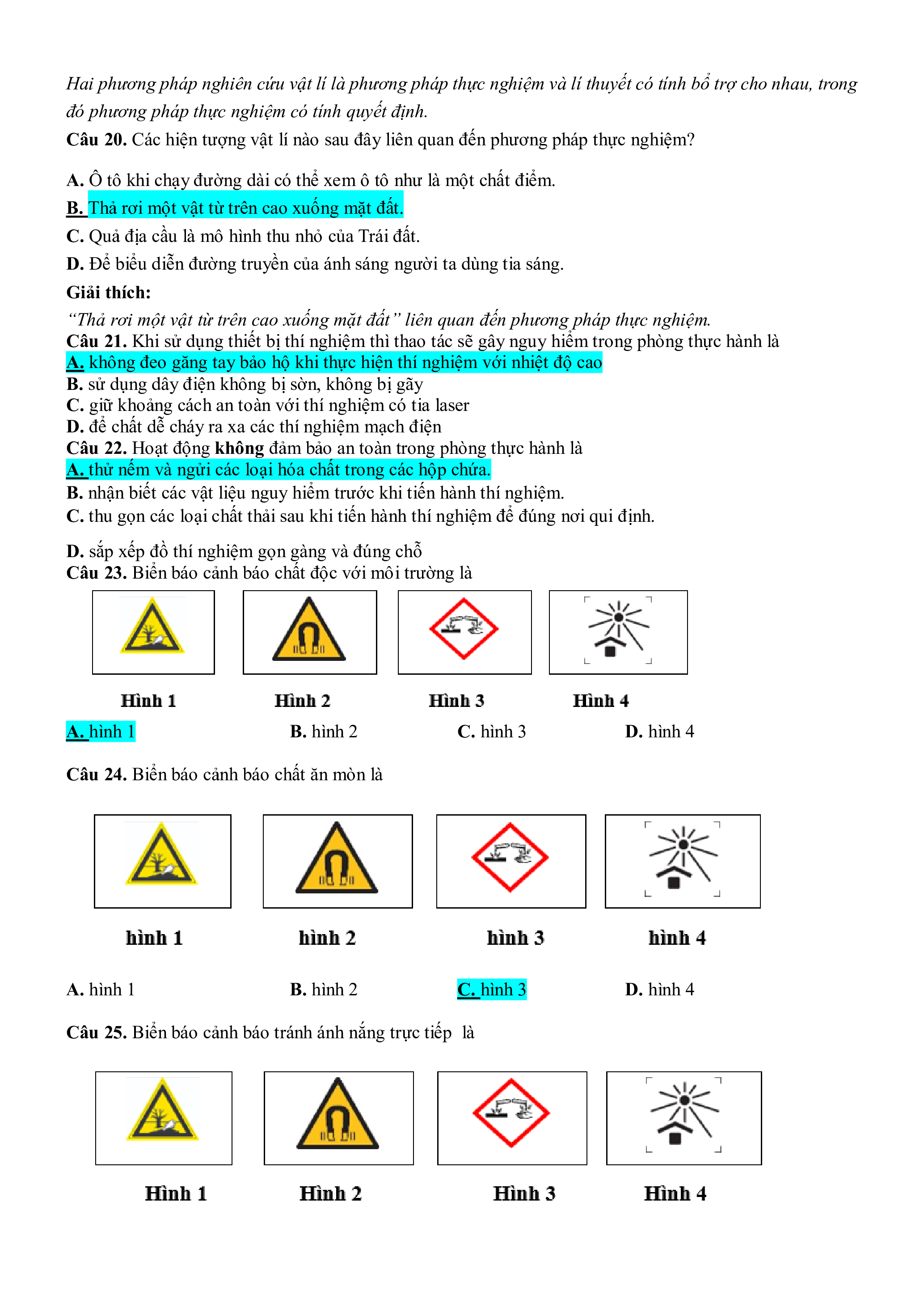 Câu 20. Các hiện tượng vật lí nào sau đây liên quan đến phương pháp thực nghiệm?