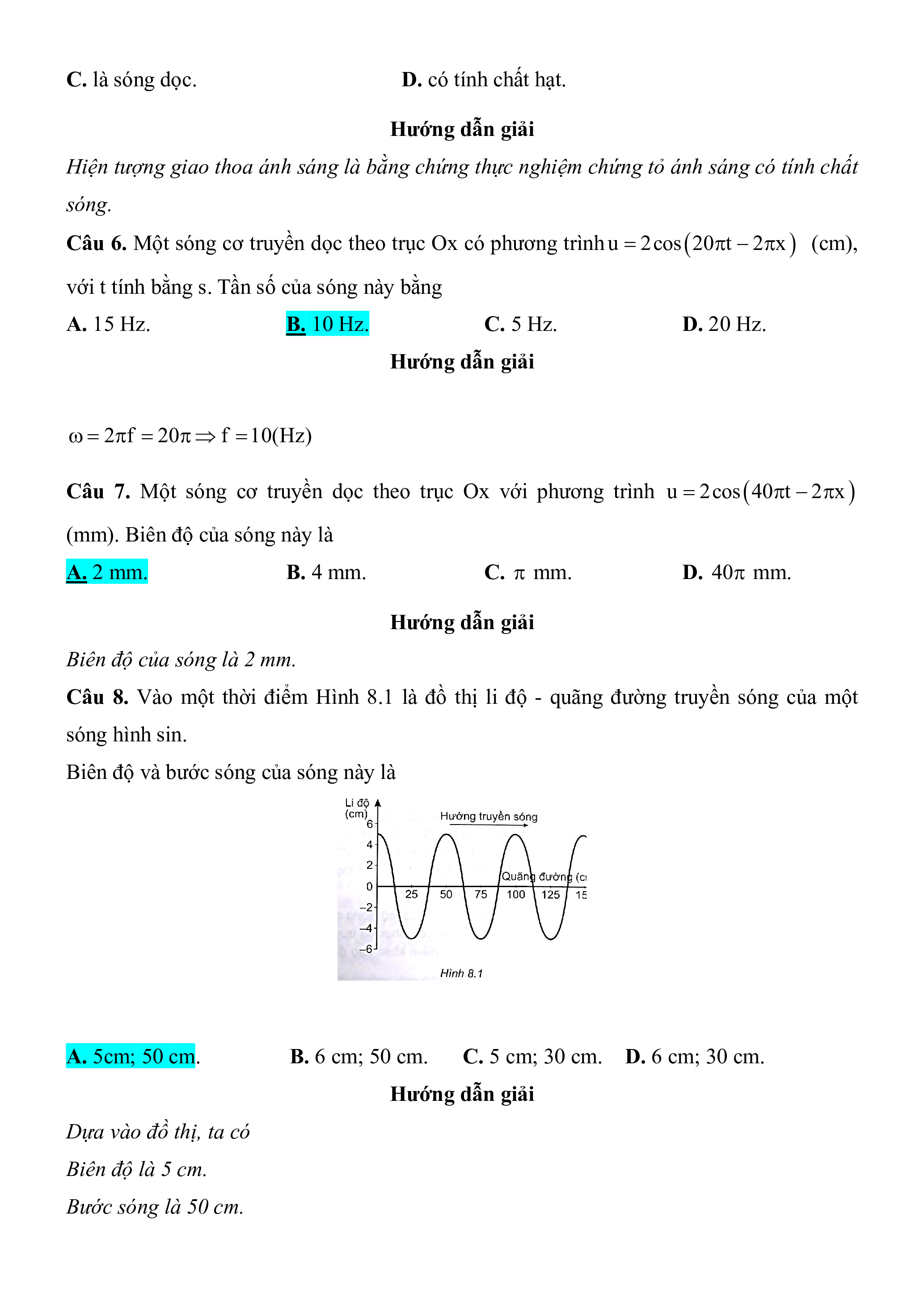 Câu 10. Xét một sóng truyền dọc theo trục Ox với phương trình u = 6cos (100πt - 4πx)