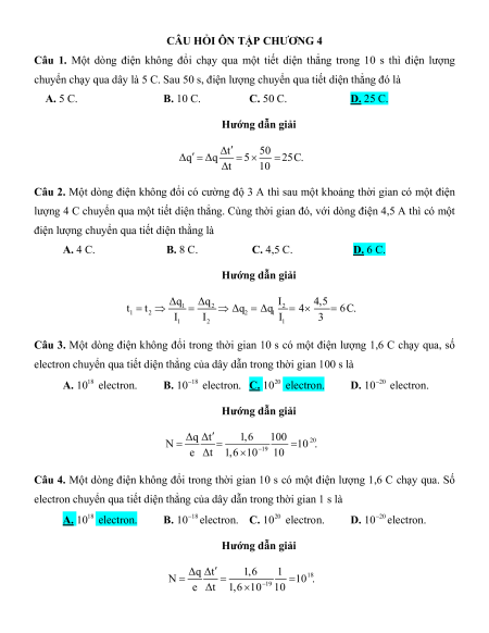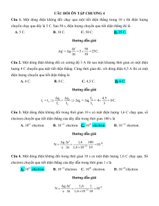 Câu 1. Một dòng điện không đổi chạy qua một tiết diện thẳng trong 10 s thì điện lượng
